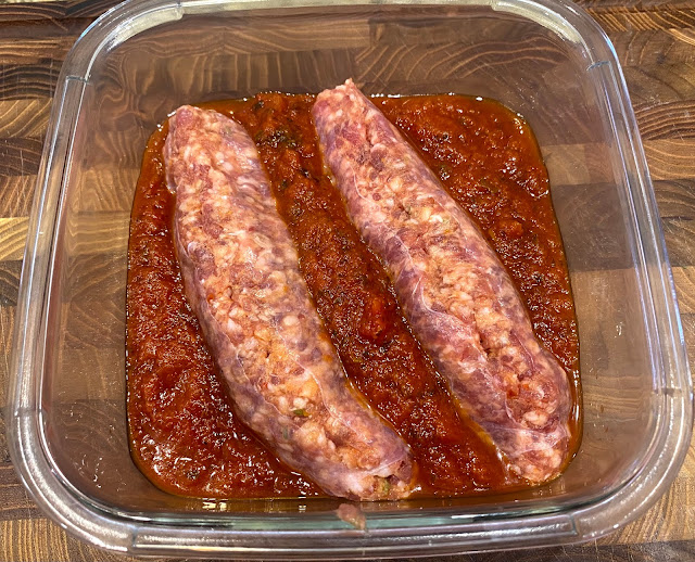 I literally opened the refrigerator and saw two Italian Sausage and Mozzarella Cheese Sticks. Bam...I thought of this dish in seconds. Stuffed the Sausage with the Mozzarella Stick and baked at 400 degrees for around 35 minutes with some Bertolli's Tomato Basil Sauce. Served with Hearts of Palm Spaghetti to stay low carb. The Hearts of Palm worked well and was not bad at all. I soaked it in Almond Milk for 30 minutes, rinsed and then heated it up with the Tomato Sauce. My Wife really loved the Mozzarella Stuffed Sausage and asked for more.