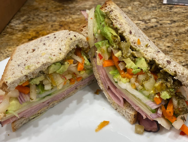 Nice to finally find a low carb bread that we actually like. Making sandwiches like normal again using Inked Keto Bread that you can buy at Costco. This one included Ham, Swiss Cheese, Tomato, Lettuce, Onion, Dijon Mustard and Spicy Olive Salad from Central Grocery in New Orleans. So good that I think I will make another one for dinner tonight.